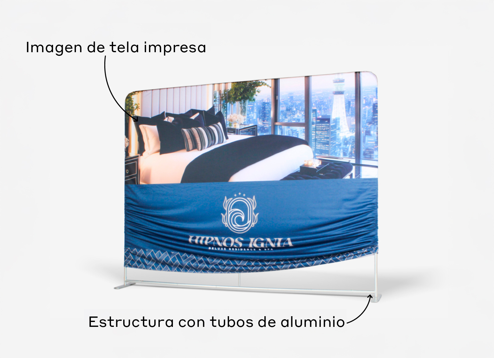 - una imagen de tela impresa que se coloca sobre la estructura, ajustándose como una funda