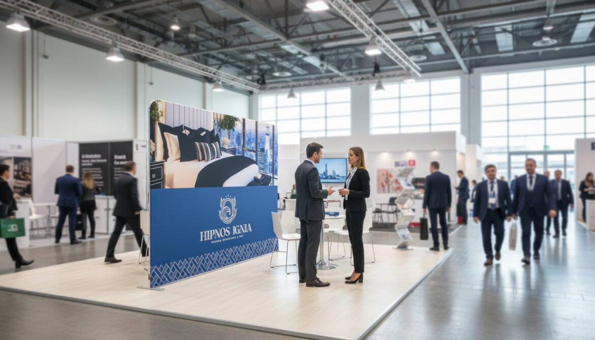 Es ideal para crear un fondo de stand claro y legible, especialmente en ferias y salones profesionales.